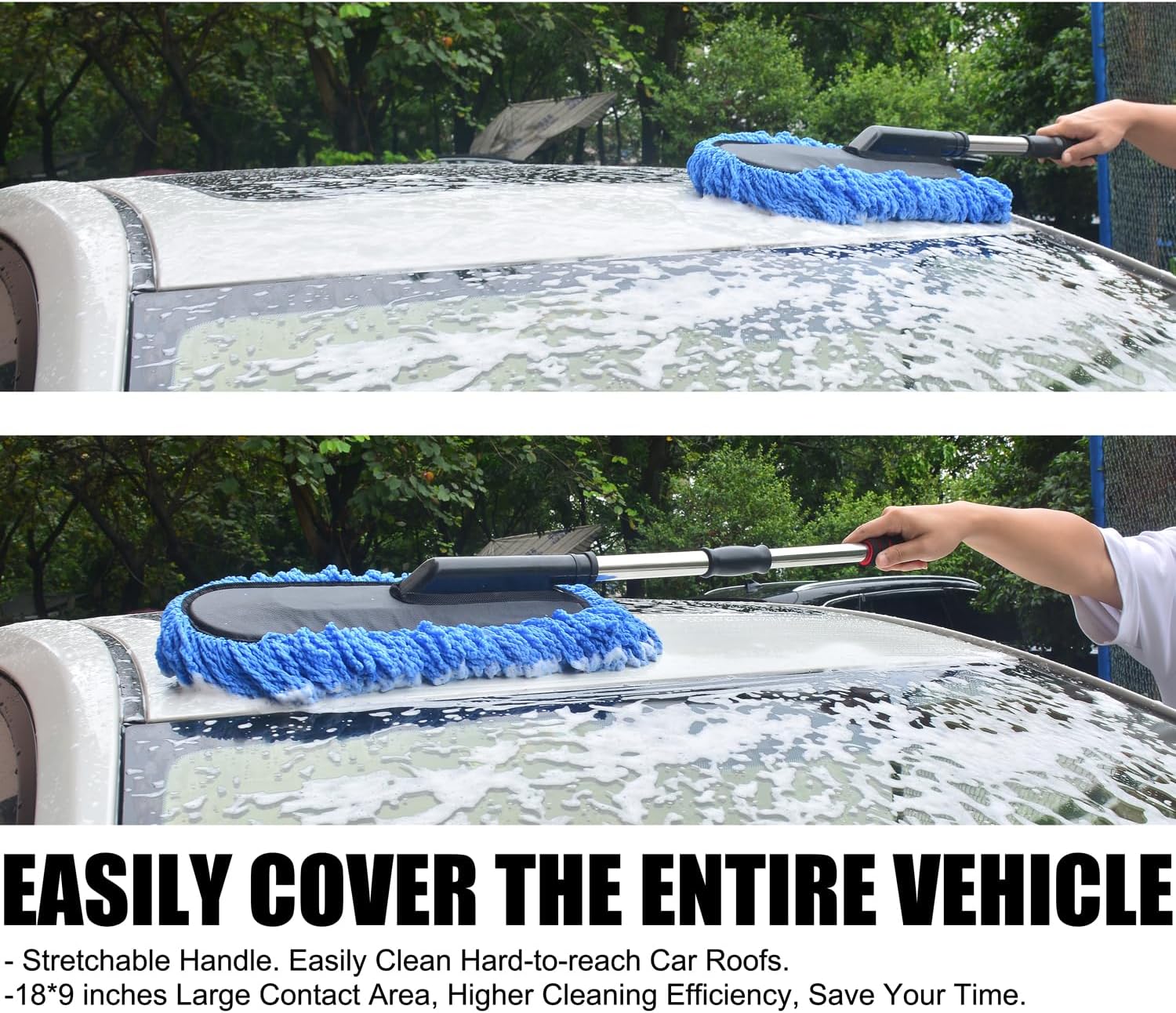 -Mango extensible: ideal para limpiar techos, parabrisas y zonas de difícil acceso.