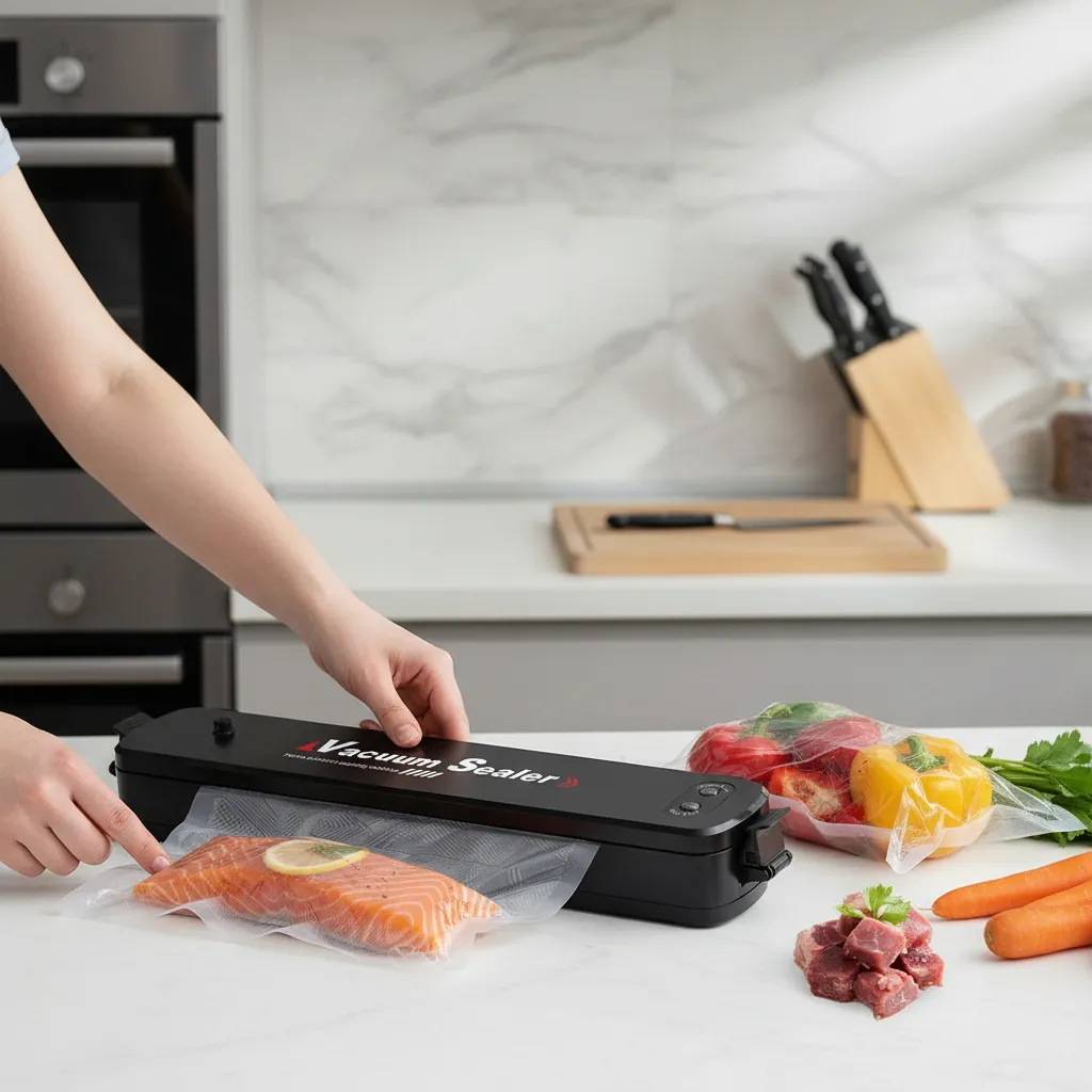 Conservá tus alimentos frescos por mucho más tiempo con esta selladora al vacío automática, ideal para cocina diaria, meal prep y ahorro doméstico. El sistema de vacío elimina el aire, reduce la oxidación y preserva sabor, textura y calidad hasta 5 veces más que los métodos tradicionales.