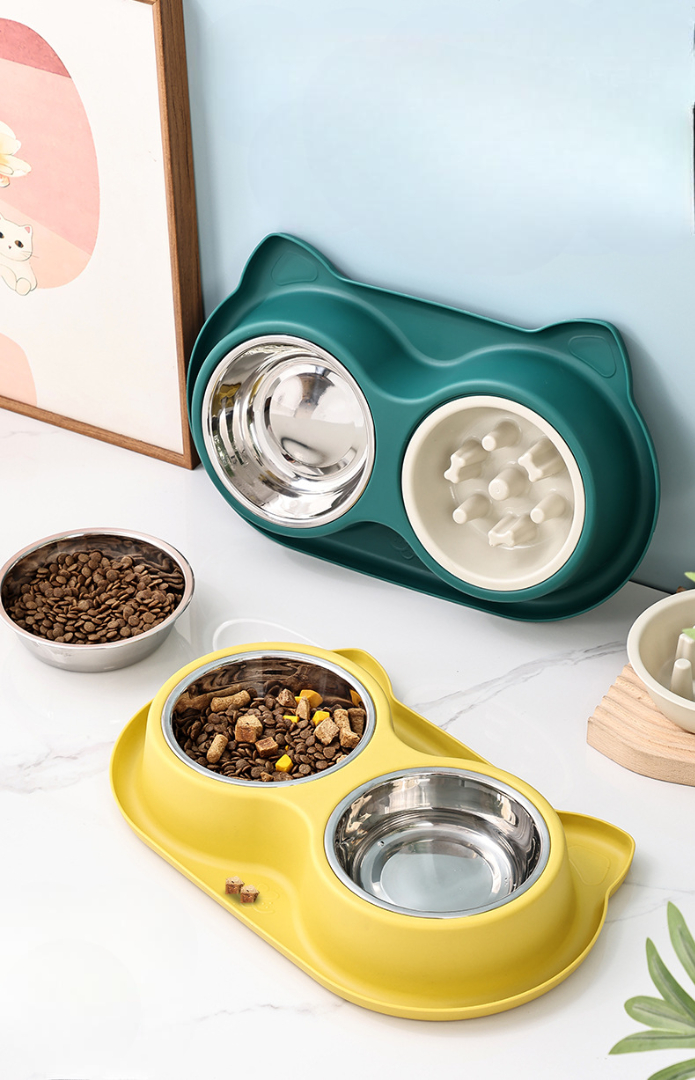 Comedero Doble para Perros y Gatos – Antigulping + Acero Inoxidable