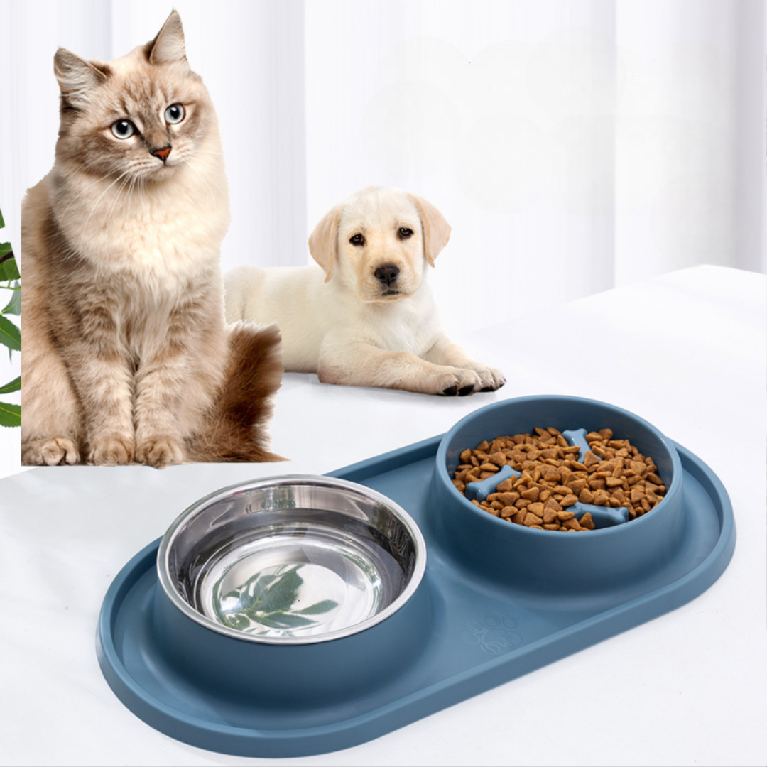 Comedero Doble para Perros y Gatos – Antigulping + Acero Inoxidable
