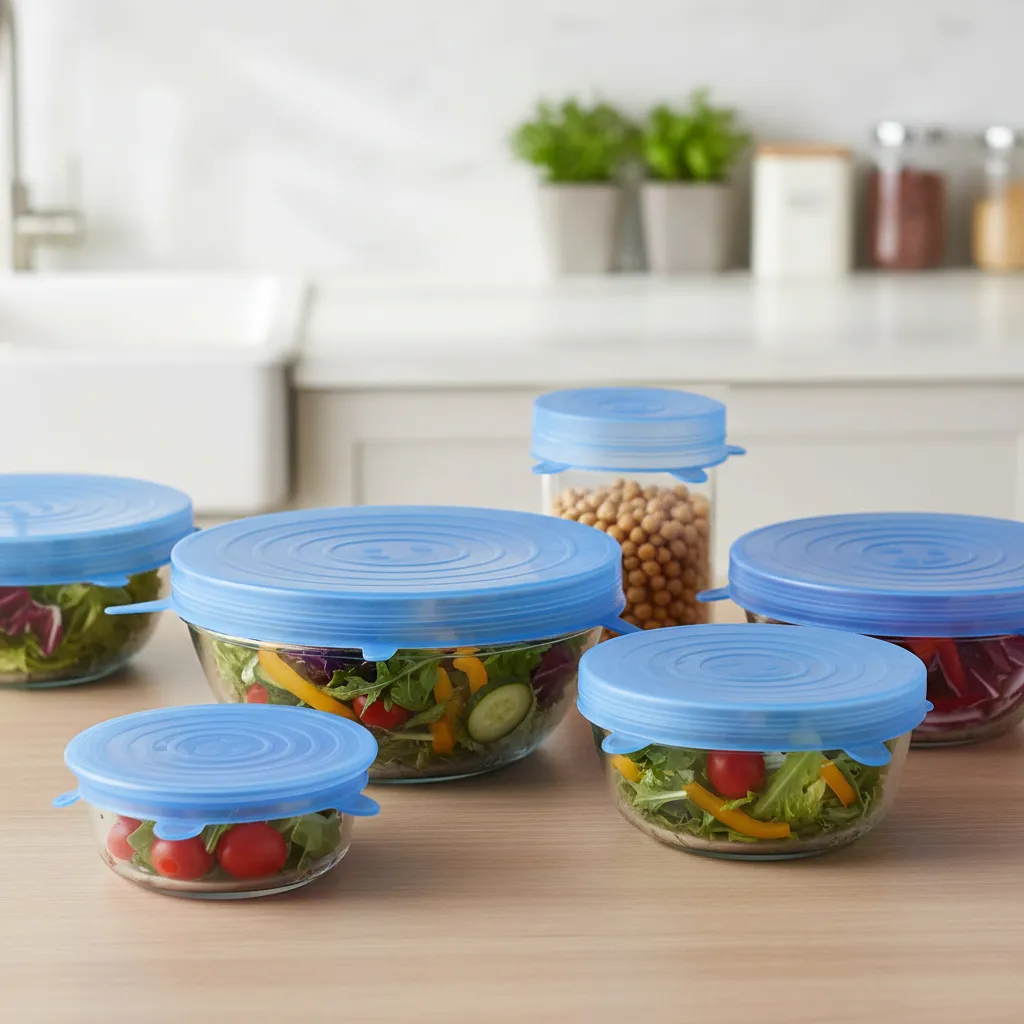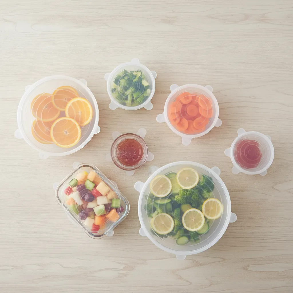 Mantén tus alimentos frescos por más tiempo con este set de 6 tapas de silicona elástica, ideales para reemplazar film, aluminio o tapas extraviadas. Son reutilizables, seguras y se adaptan a recipientes de diferentes tamaños y formas.