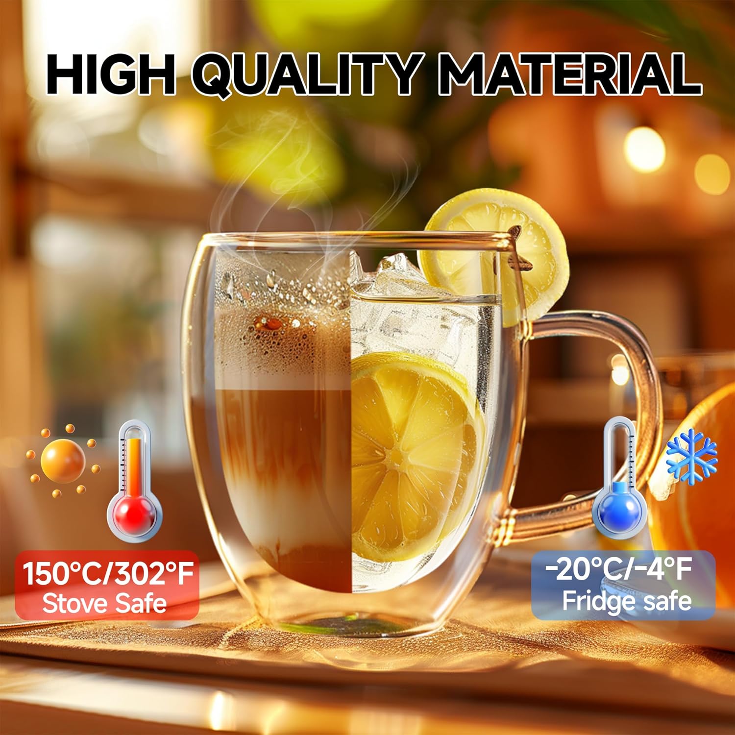 Disfrutá tus bebidas calientes o frías por más tiempo con esta elegante taza de vidrio de doble pared. Fabricada en vidrio borosilicato de alta resistencia, mantiene la temperatura ideal sin quemar las manos y protege las superficies gracias a su base aislante.