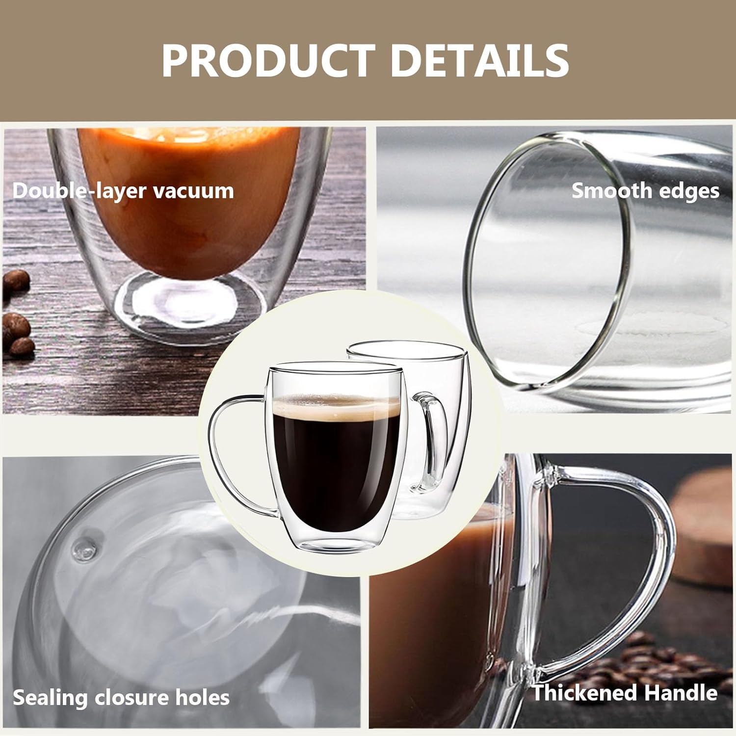 Taza / Vaso de Vidrio Doble Pared – Aislante Calor y Frío